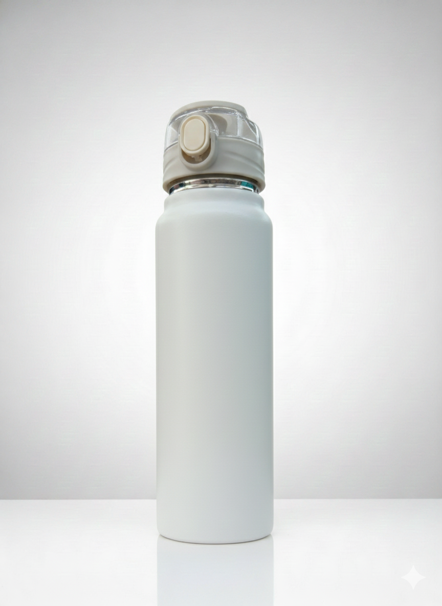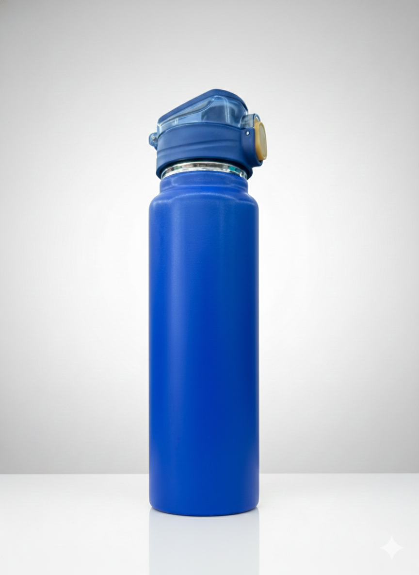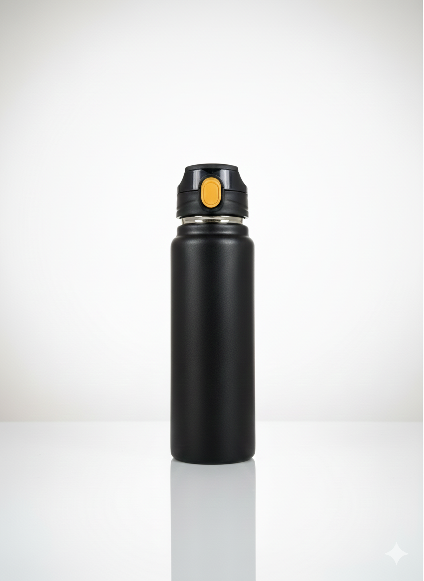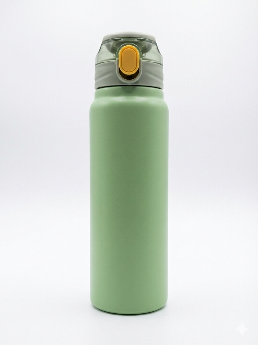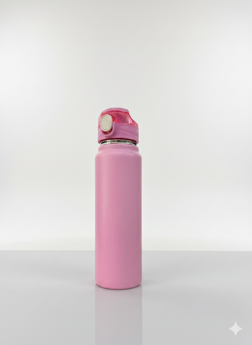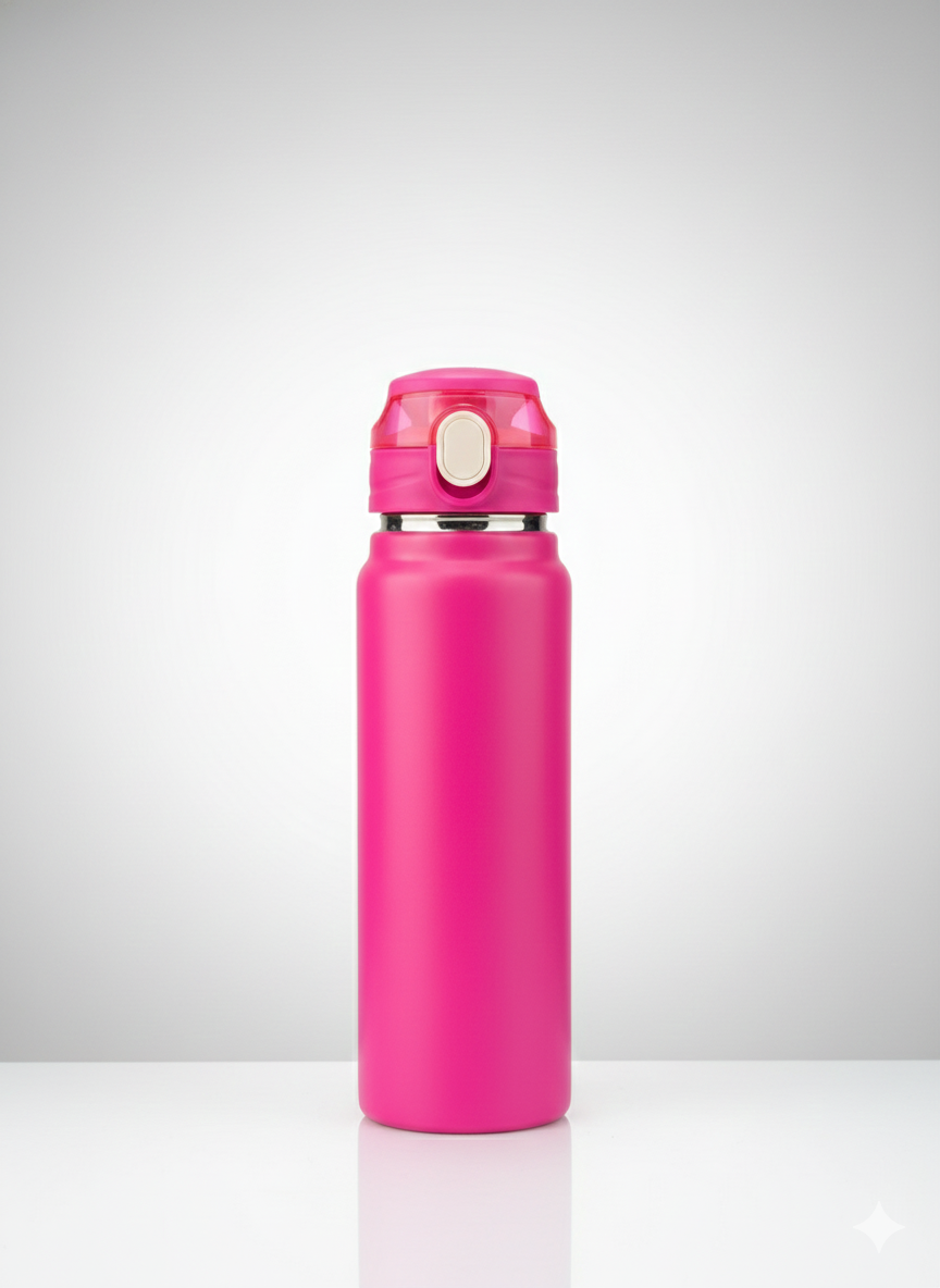 Esta botella térmica presenta un diseño elegante y funcional con un acabado mate disponible en una amplia variedad de colores vibrantes y neutros. Está equipada con una tapa de seguridad que incluye un botón de apertura automática y un cierre hermético para prevenir derrames, lo que la hace ideal para el transporte diario. Su estructura interna está diseñada para mantener la temperatura de tus bebidas, ya sean frías o calientes, por tiempo prolongado.