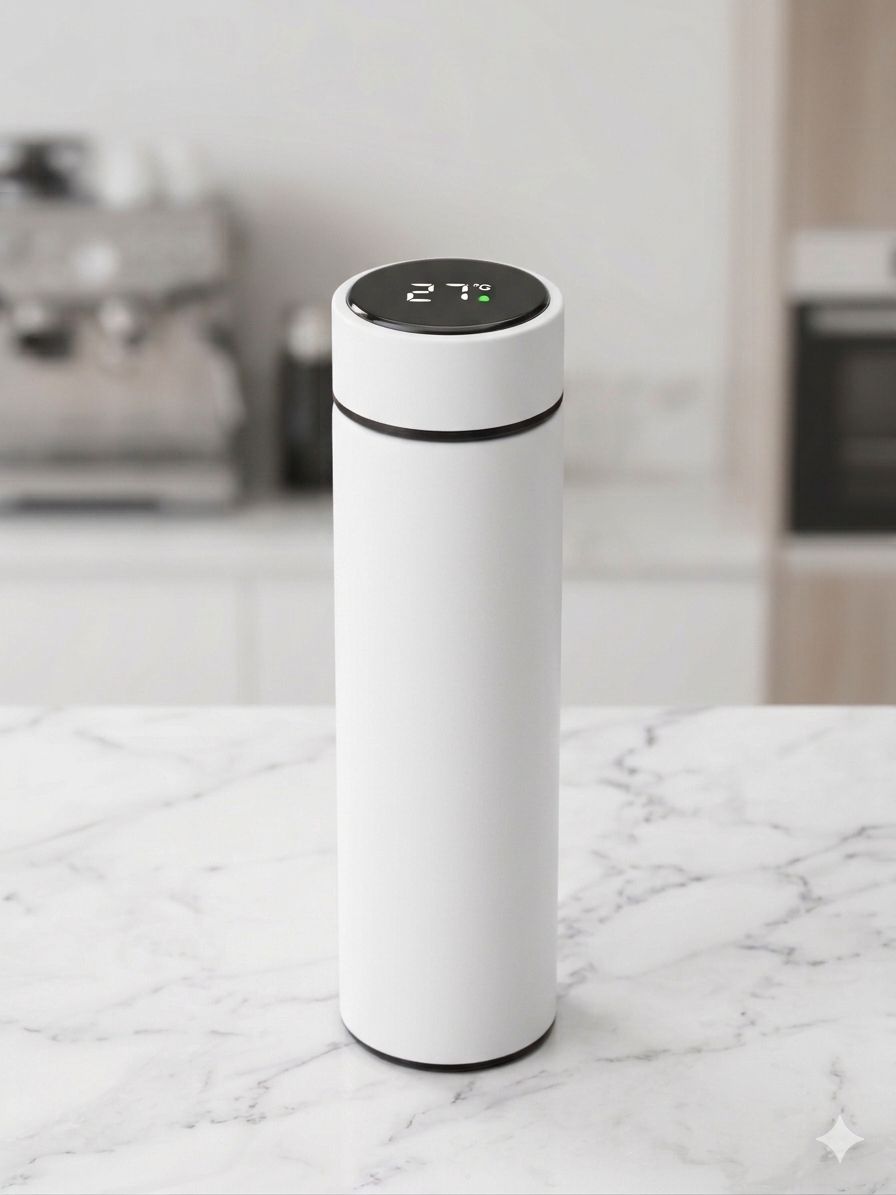 Olvídate de las quemaduras accidentales y disfruta de tu bebida a la temperatura perfecta. Nuestra botella inteligente combina un diseño minimalista con tecnología de vanguardia. Con solo un toque en la tapa, la pantalla LED integrada te muestra la temperatura exacta del interior en tiempo real.