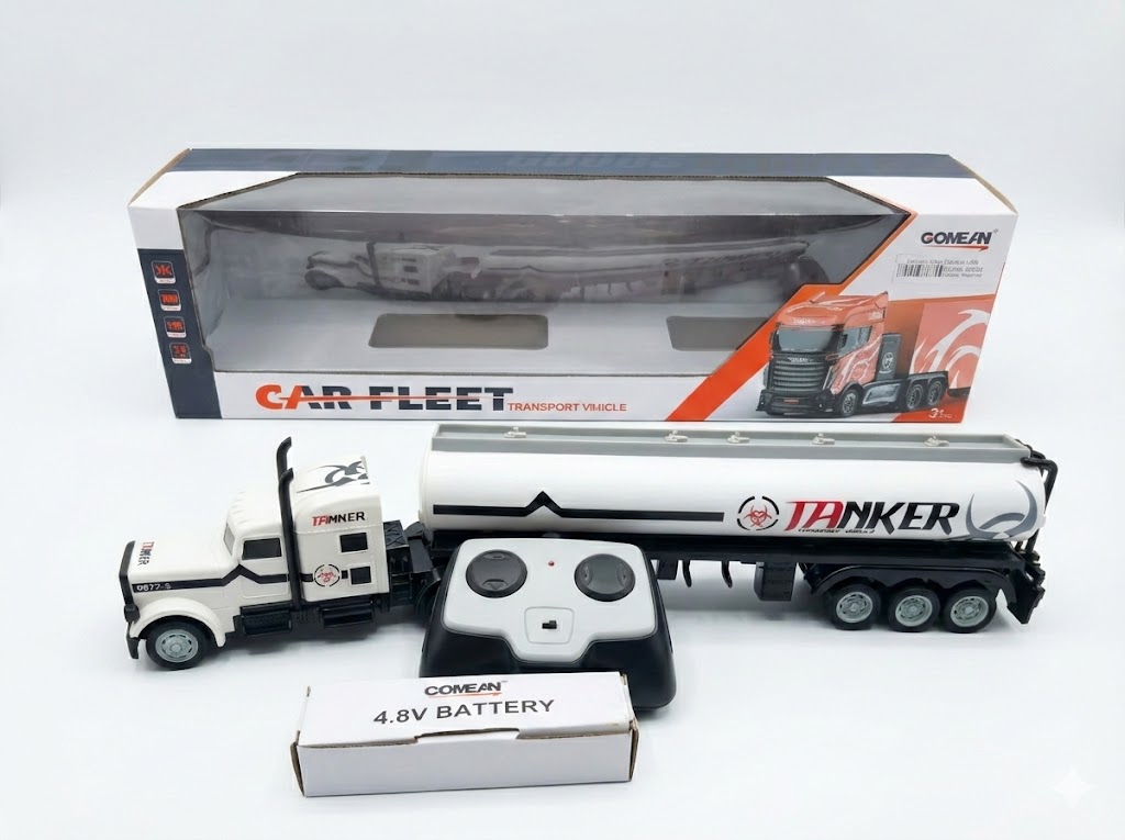 Este camión cisterna a control remoto presenta un diseño realista en blanco y negro, ideal para horas de juego imaginativo. El set completo incluye un mando a distancia ergonómico de fácil manejo y una batería recargable de 4.8V lista para usar. Su estética detallada y construcción robusta lo convierten en una excelente opción para los entusiastas de los vehículos industriales de juguete.