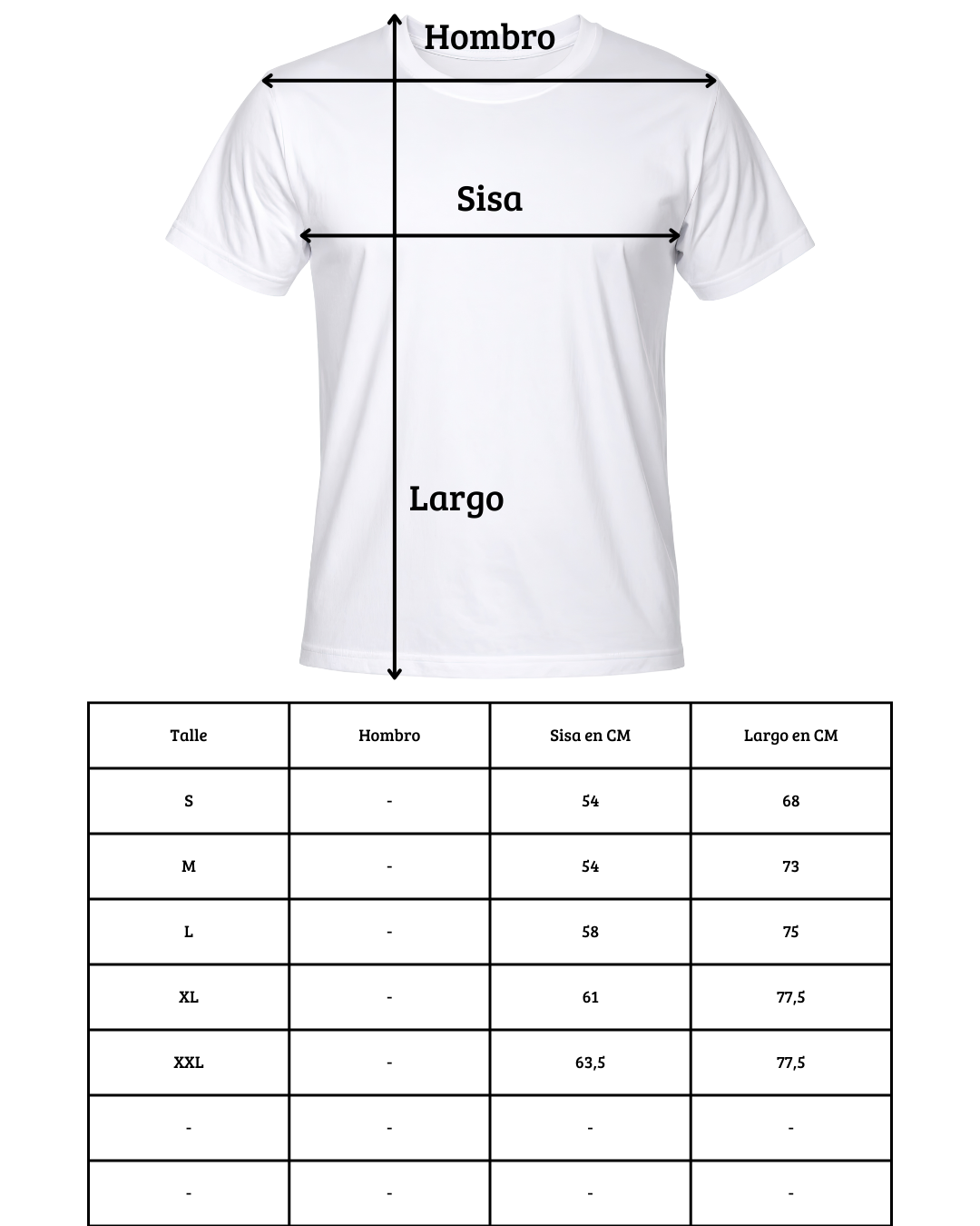 | Talle | S, M, L, XL, XXL |