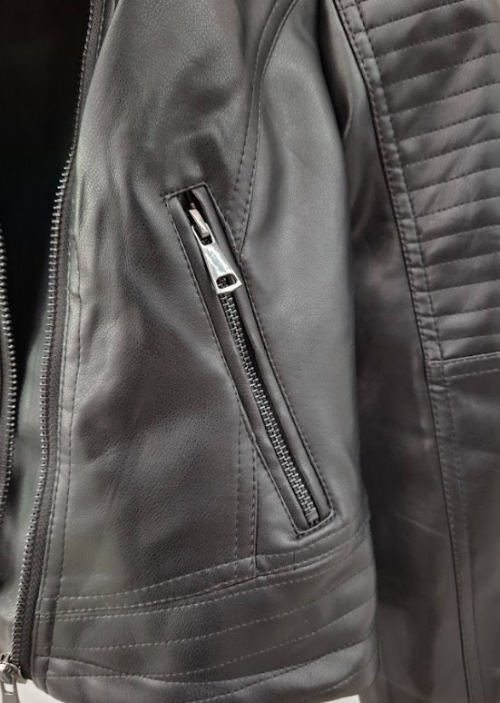 Bolsillos Funcionales: Incluye bolsillos laterales con cierre y un detalle de bolsillo pequeño con solapa que completa el look clásico biker.