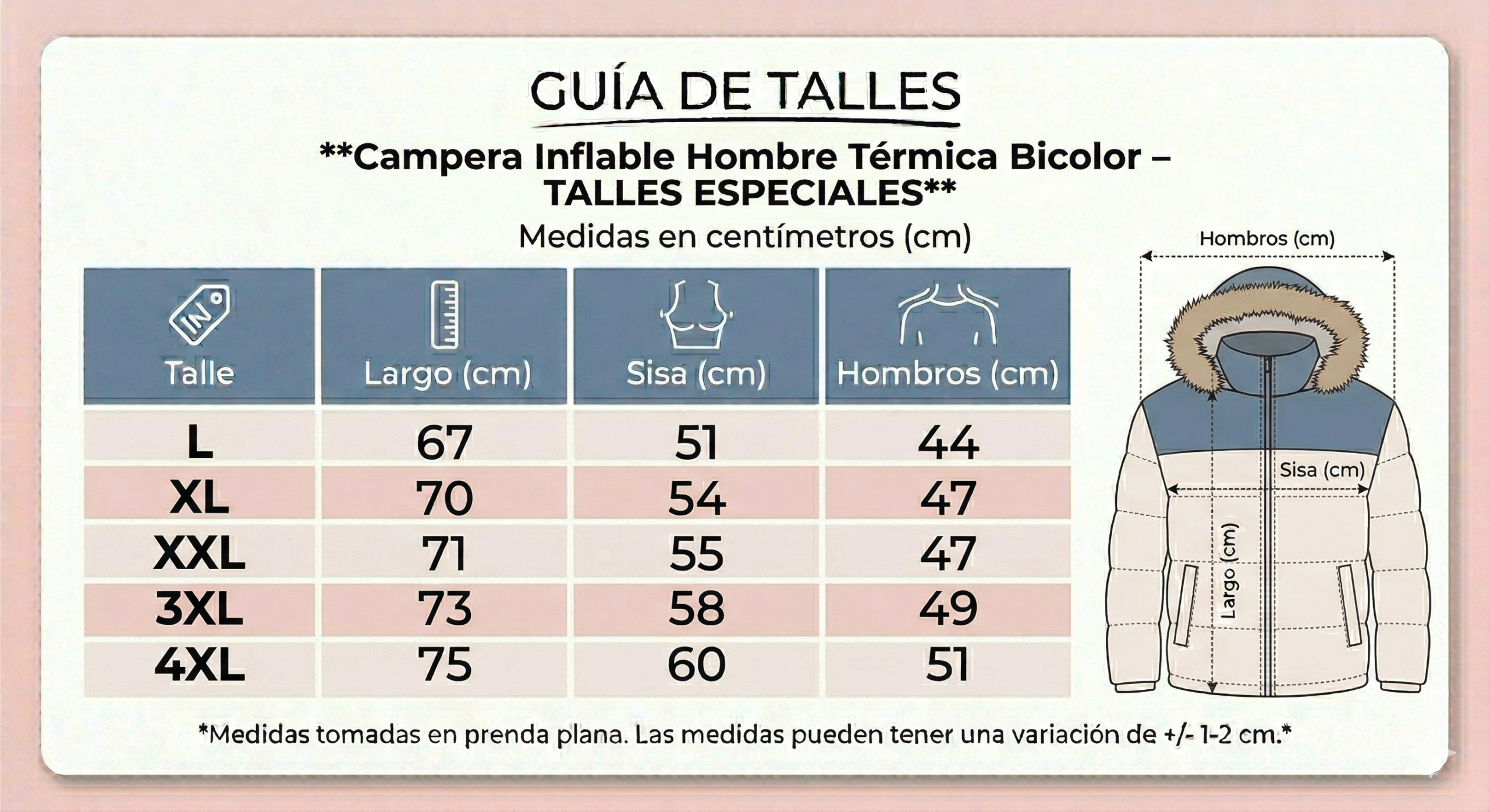 | Talle | 3XL, 4XL, L, XL, XXL |