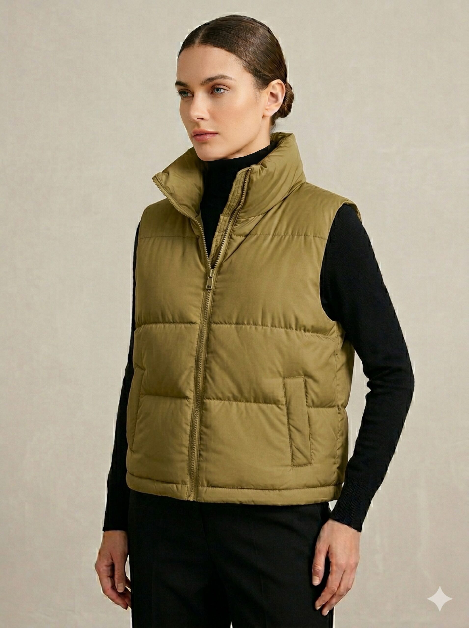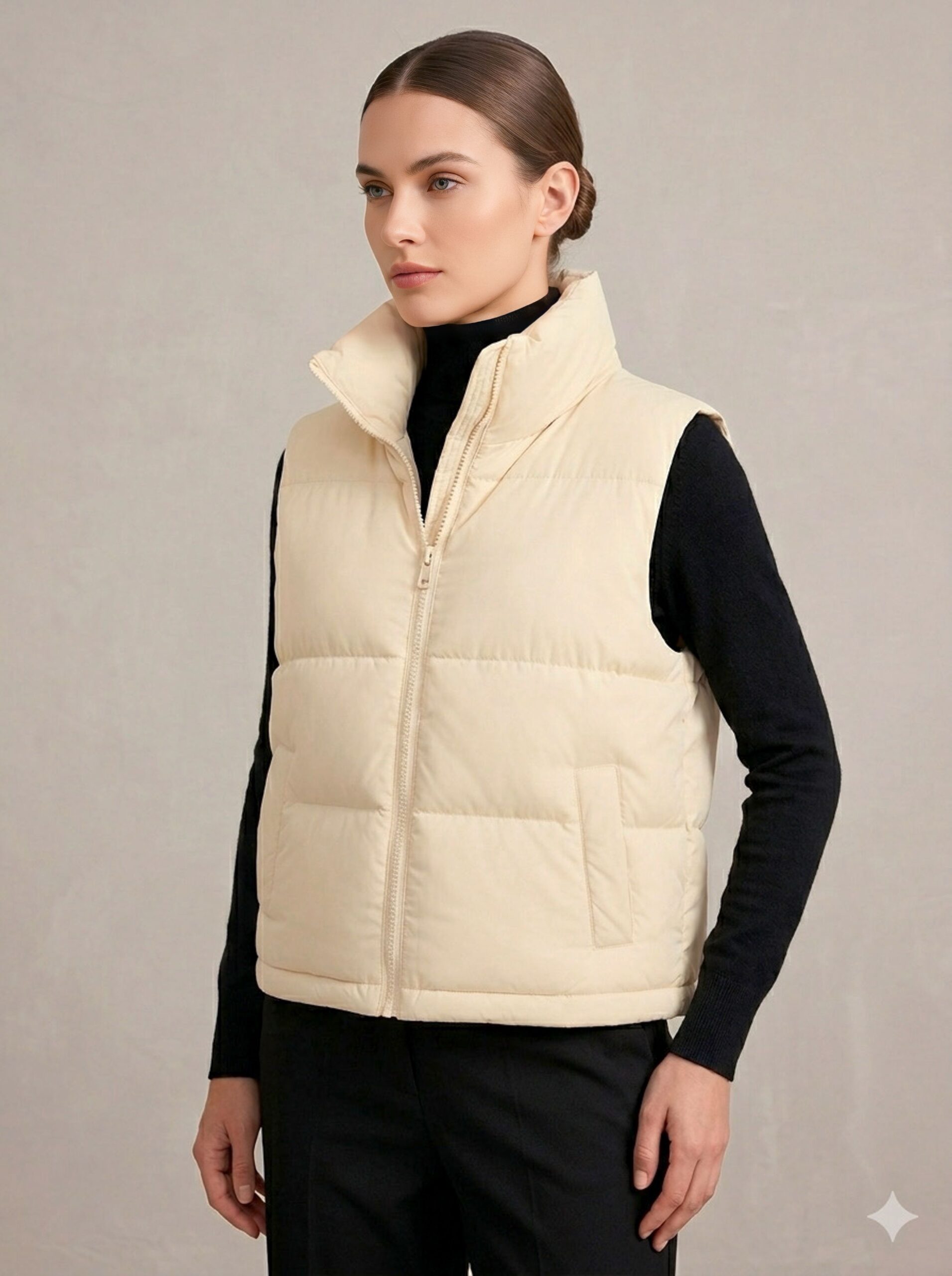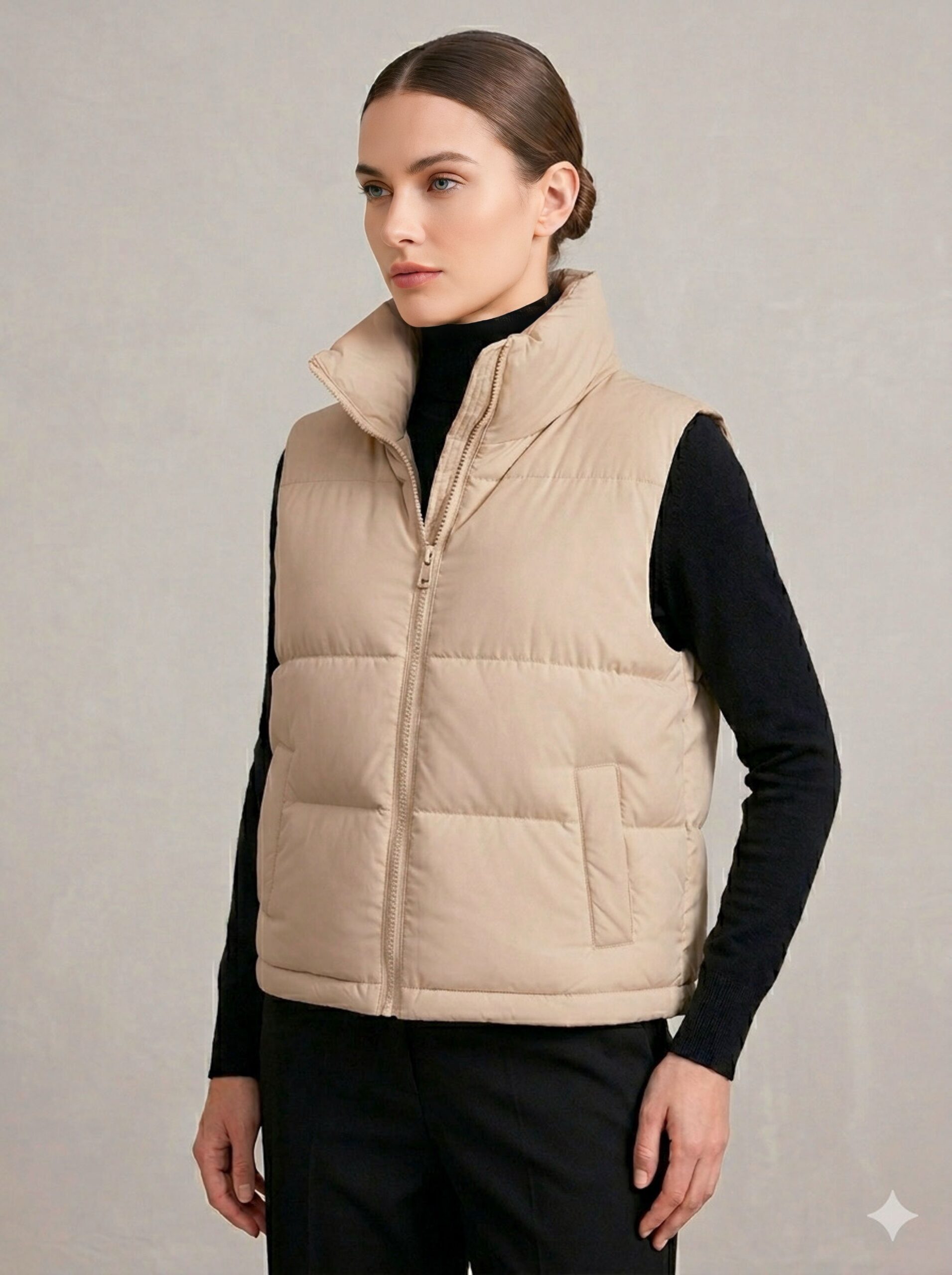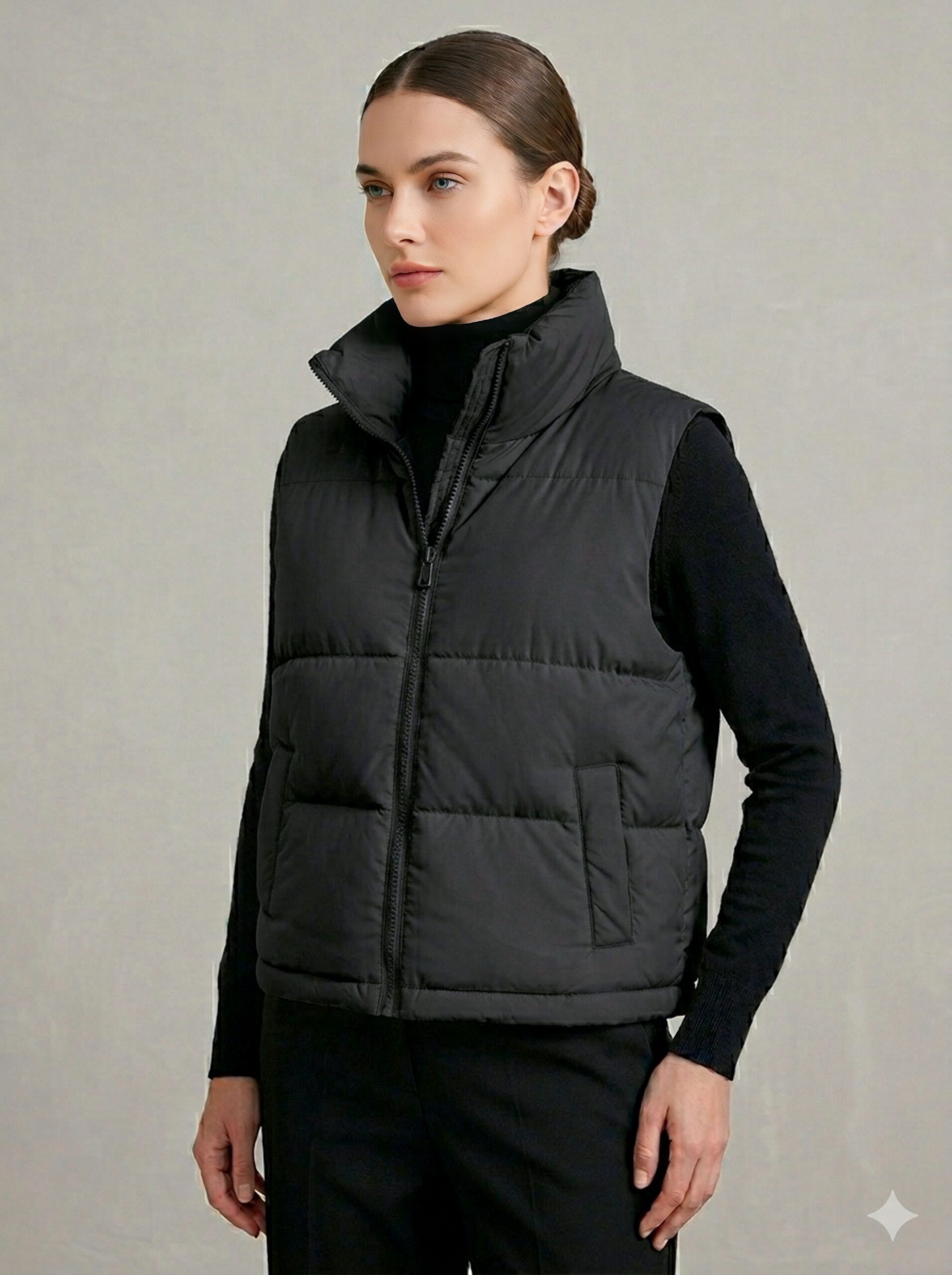 Nuestro chaleco puffer está confeccionado en tela técnica de alta densidad con un acabado mate ultra moderno (no es ecocuero), lo que lo hace ligero, suave al tacto y extremadamente versátil. Su diseño sin capucha y con cuello alto estiliza la figura, convirtiéndose en la prenda ideal para usar sobre buzos, sweaters o camisas.