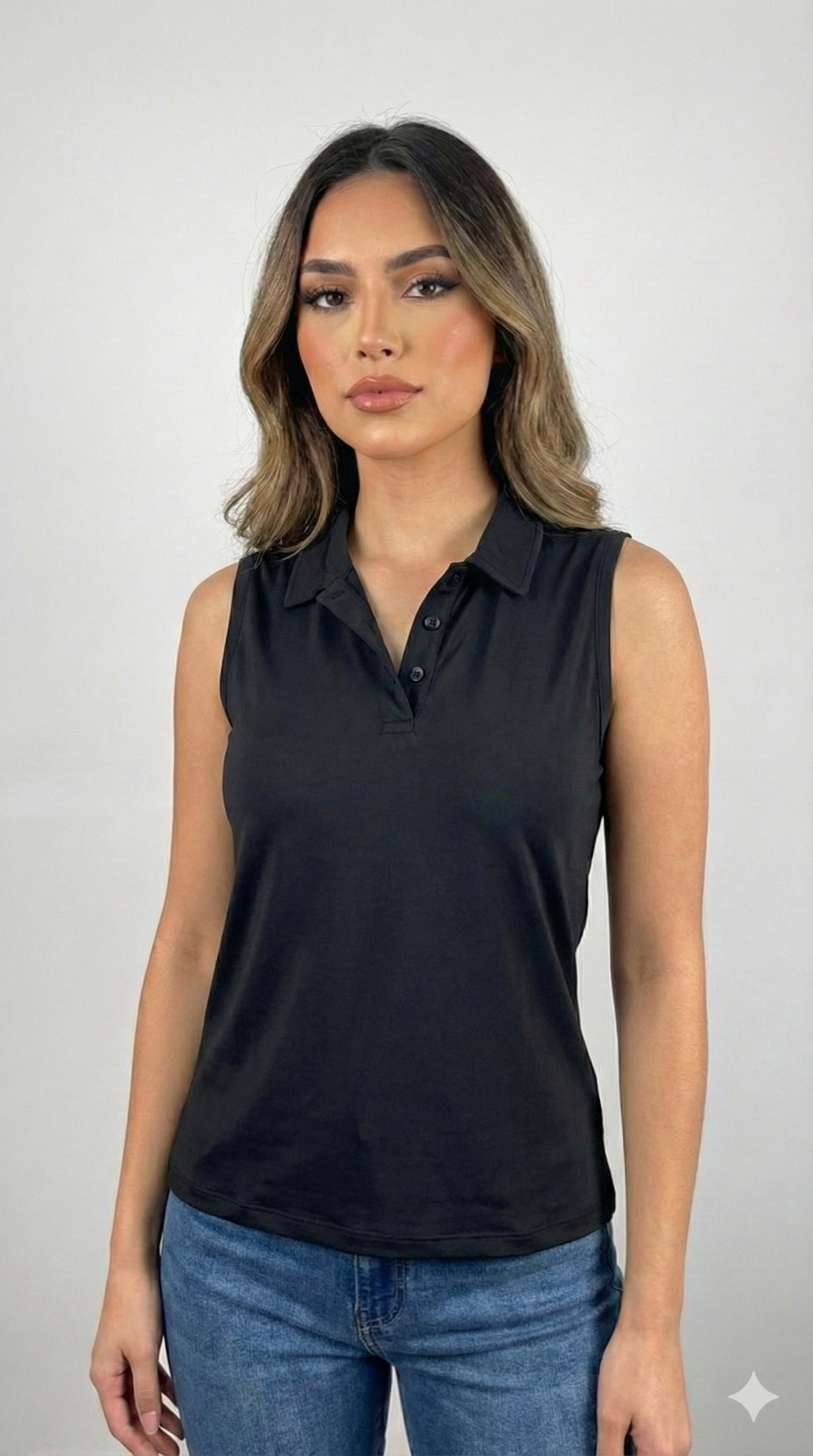 Dale un giro sofisticado a tus básicos con esta chomba musculosa. Combina la estructura clásica del cuello polo y cartera con botones en un diseño sin mangas, ideal para mantener la frescura sin perder el estilo. Confeccionada en una tela suave de excelente caída, es la prenda perfecta para un look de oficina relajado o una salida casual de fin de semana. Un diseño versátil y femenino disponible en varios colores tendencia.