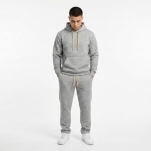 Nuestro conjunto de dos piezas está confeccionado en frisa de alta calidad, garantizando una textura suave al tacto y el abrigo necesario para las temporadas más frescas. El diseño combina un buzo versátil con capucha y un pantalón jogger ajustable que se adapta perfectamente a tu cuerpo.