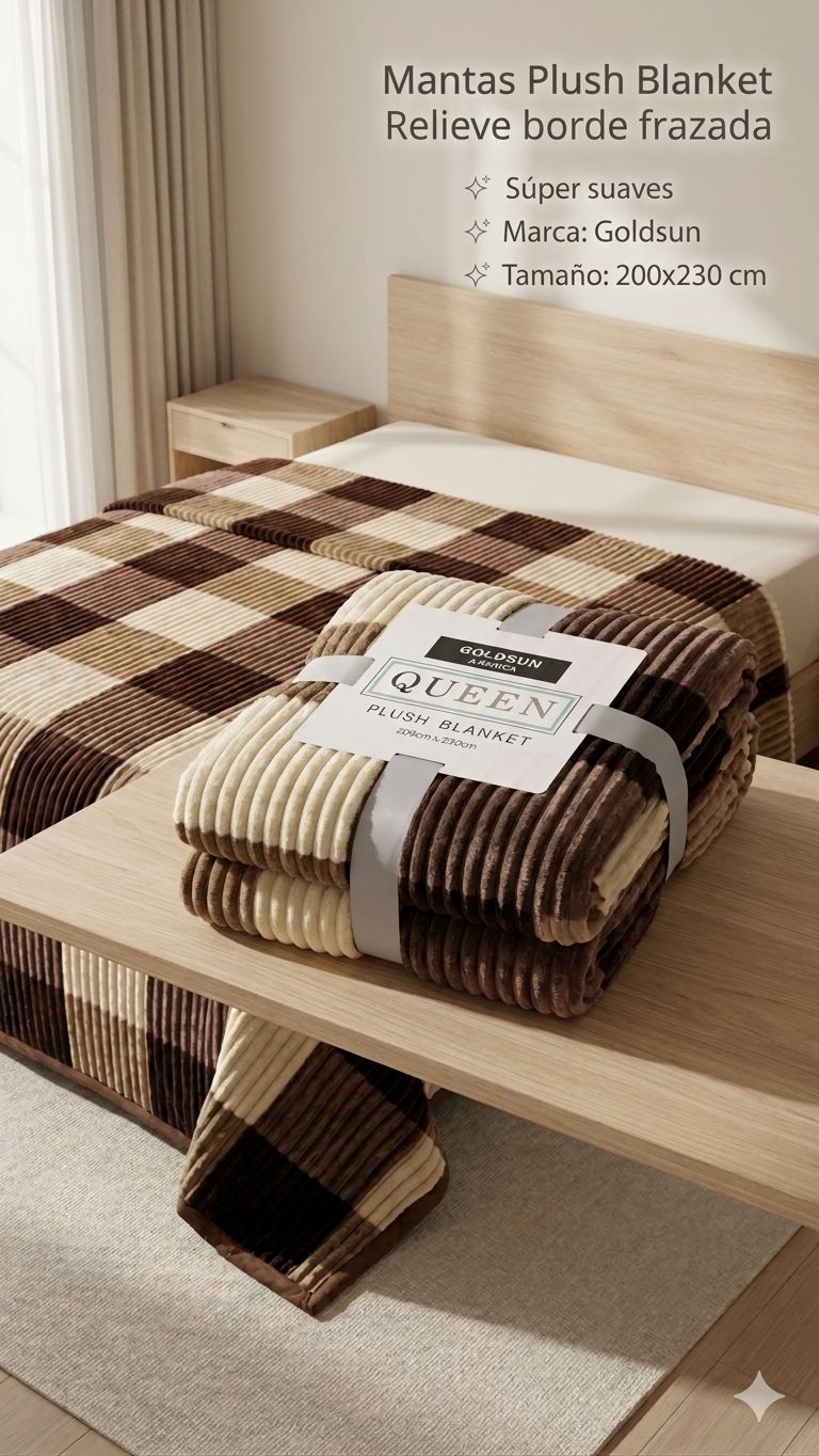 Renueva tu ropa de cama con la manta Plush Blanket Goldsun, diseñada específicamente para ofrecer durabilidad y una retención térmica excepcional. Su relieve en el borde y su textura acanalada no solo son agradables a la vista, sino que refuerzan la estructura de la frazada para un uso prolongado.