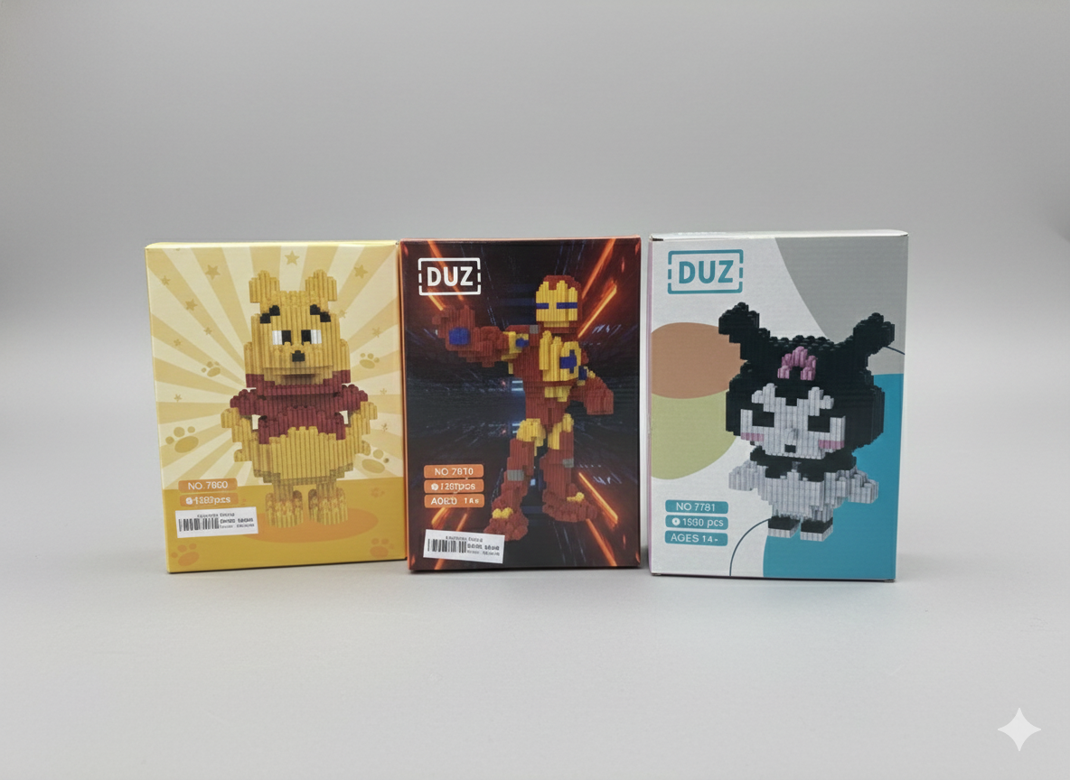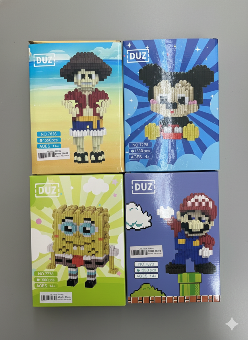 Estos sets de ladrillos de construcción permiten armar figuras coleccionables con un detallado estilo pixelado mediante piezas pequeñas de alta precisión. Cada caja contiene todo lo necesario para ensamblar personajes icónicos, fomentando la concentración y la habilidad motriz fina. Las piezas encajan de forma segura, logrando una estructura sólida y decorativa una vez finalizado el armado. Es un pasatiempo ideal tanto para niños como para adultos, ofreciendo una amplia variedad de modelos para armar y exhibir.