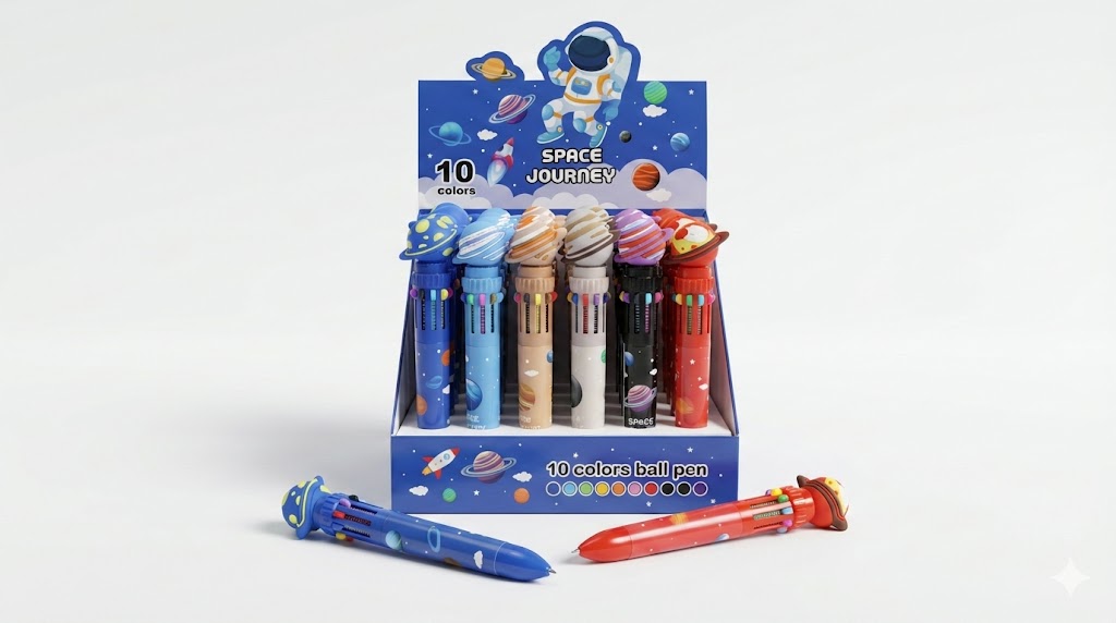 Potencia tu mostrador con esta caja exhibidora de 36 lapiceras multicolor, un producto de ‘compra por impulso’ garantizada gracias a su atractivo diseño y bajo costo unitario. El pack incluye un surtido equilibrado de los 6 modelos de Planetas Asombrosos en diversos colores, listos para captar la atención de niños y estudiantes al instante. Es la inversión ideal para librerías y regalerías que buscan mercadería de alta rotación y excelente margen de ganancia.
