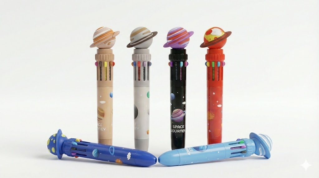¡Escribir nunca fue tan sensacional y divertido como con estas lapiceras multicolor de edición Viaje Espacial! Cada bolígrafo incluye 10 tonos diferentes y un adorable tope de goma con planetas para coleccionar. No te quedes sin la tuya y agrega un poco de alegría y color a cada palabra que escribas.