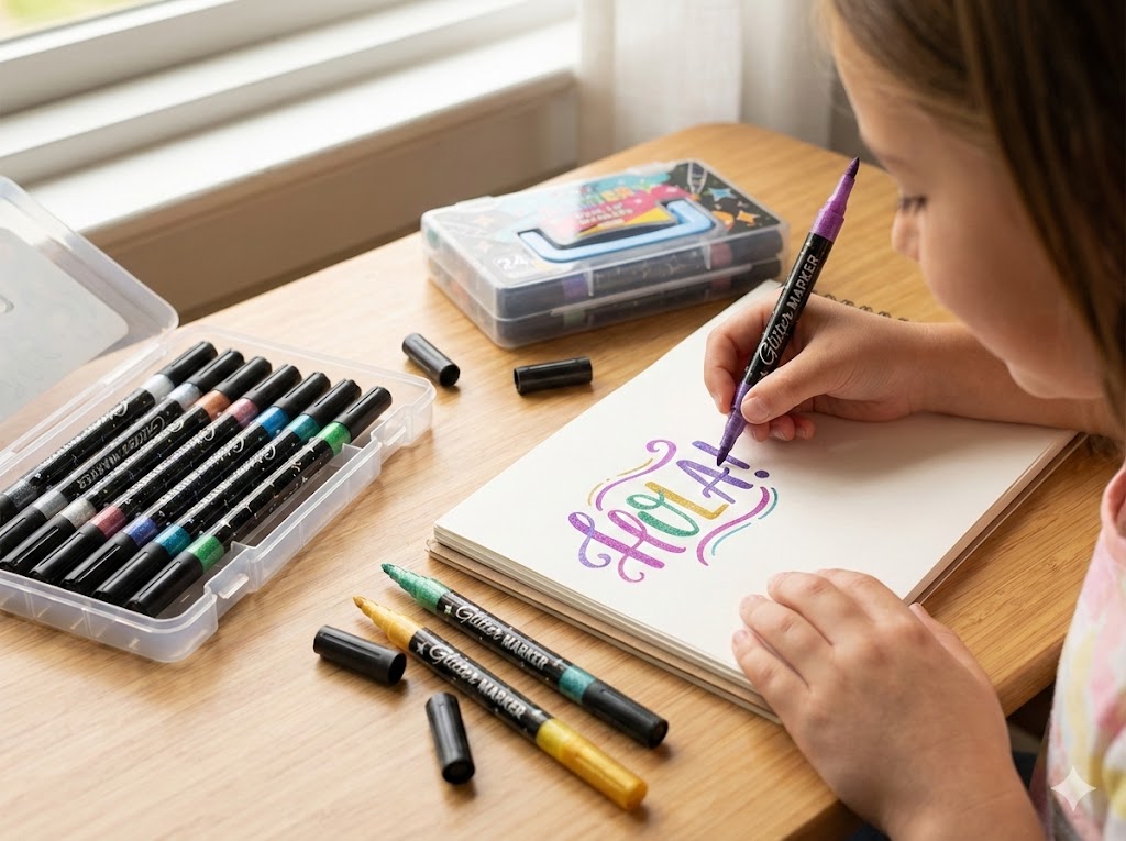 ¡Despierta la creatividad de tus pequeños con este exclusivo set de 12 marcadores con glitter que ofrecen 24 colores vibrantes gracias a su práctico diseño de doble punta! Todo viene organizado en un resistente estuche tipo mini valija, ideal para que los niños mantengan su espacio ordenado o lleven el brillo a cualquier parte. Es el regalo perfecto para transformar tareas y dibujos en obras de arte brillantes sin complicaciones.