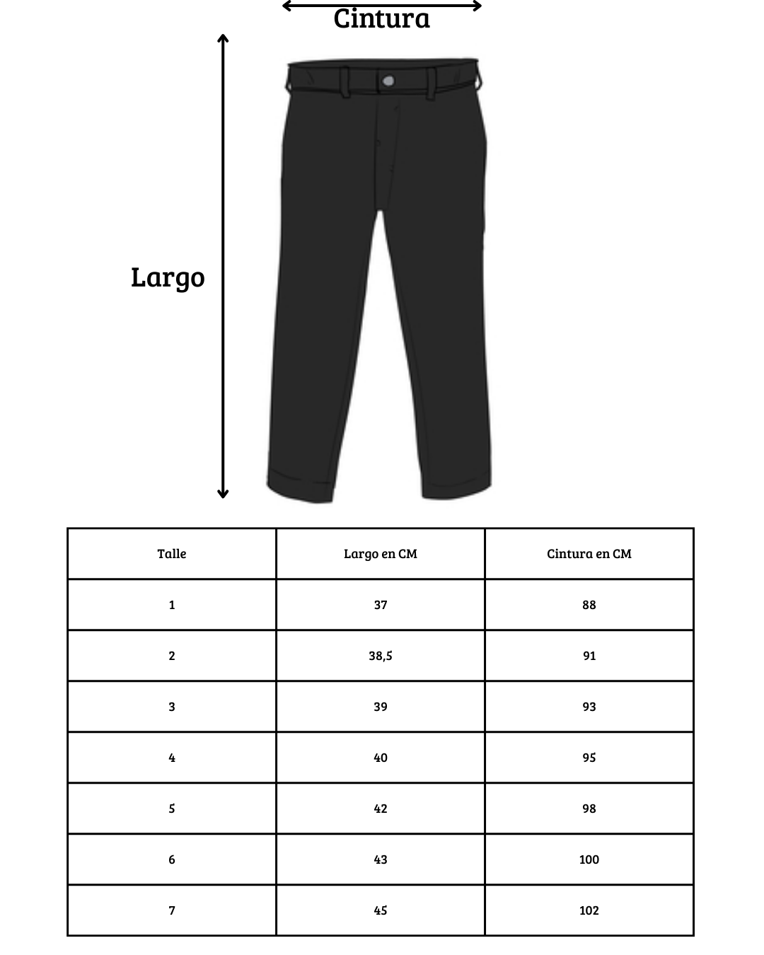 | Talle | 1, 2, 3, 4, 5, 6, 7 |