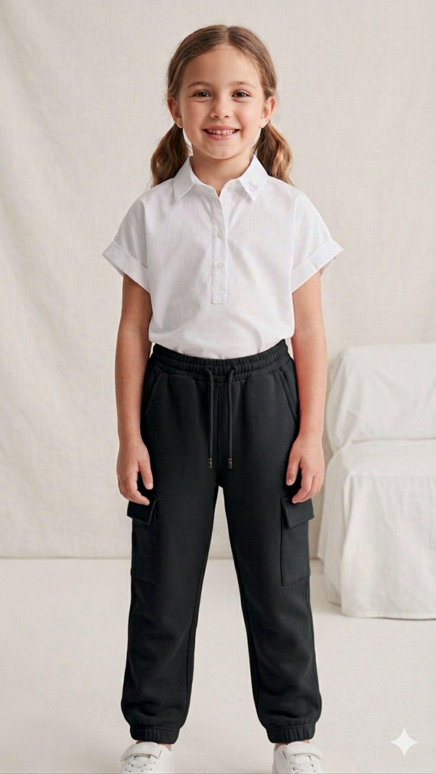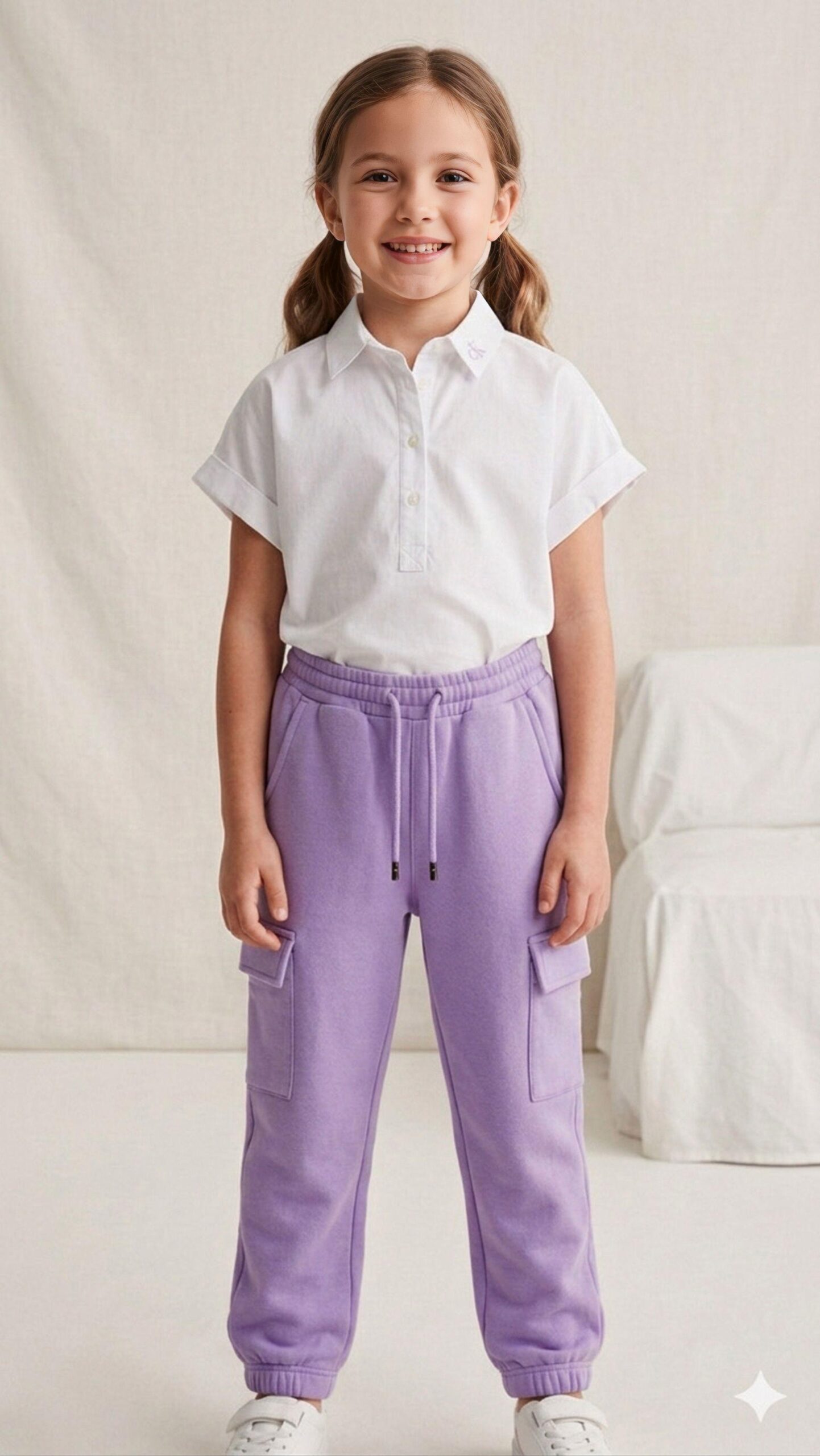 Nuestros nuevos joggers estilo cargo para niñas están diseñados para acompañarlas en todas sus actividades, brindando libertad de movimiento y un look moderno. Fabricados en algodón de alta calidad, son suaves al tacto y resistentes para el uso diario.