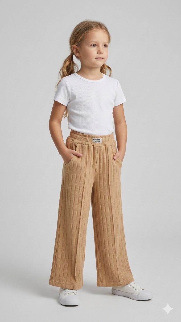 Corte Wide Leg: Silueta de pata ancha que es tendencia mundial en moda infantil.