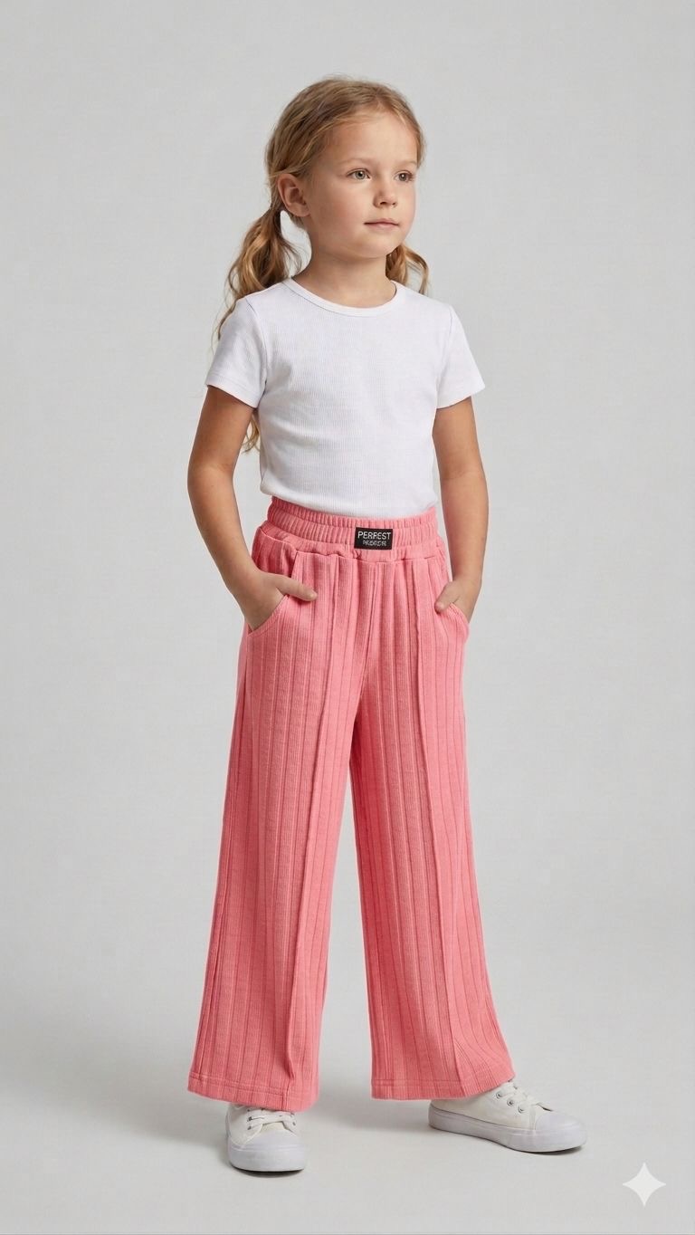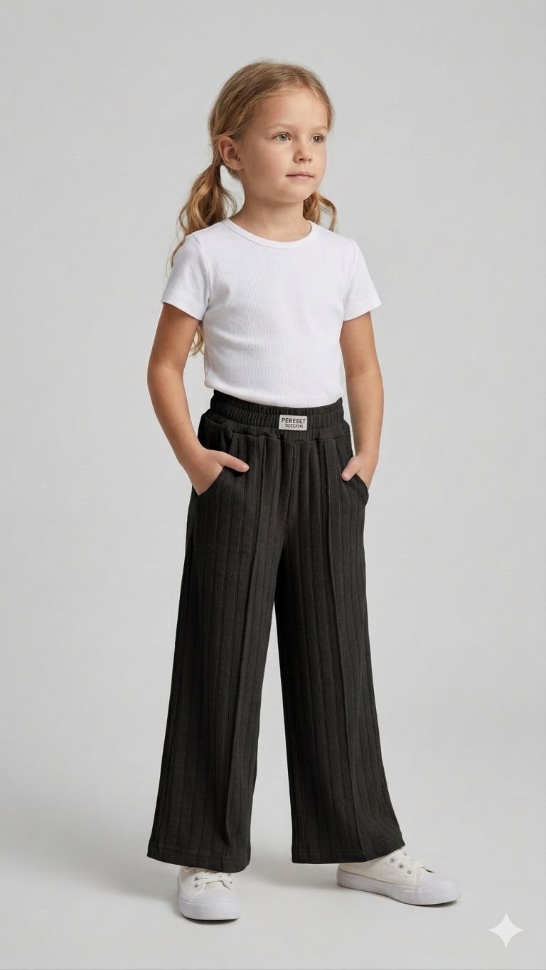 Nuestros pantalones Wide Leg están diseñados para brindar una caída fluida y un look moderno. Confeccionados en una tela tipo morley texturada (ribb) que es súper suave al tacto y elástica, permitiendo que jueguen y se muevan con total libertad.