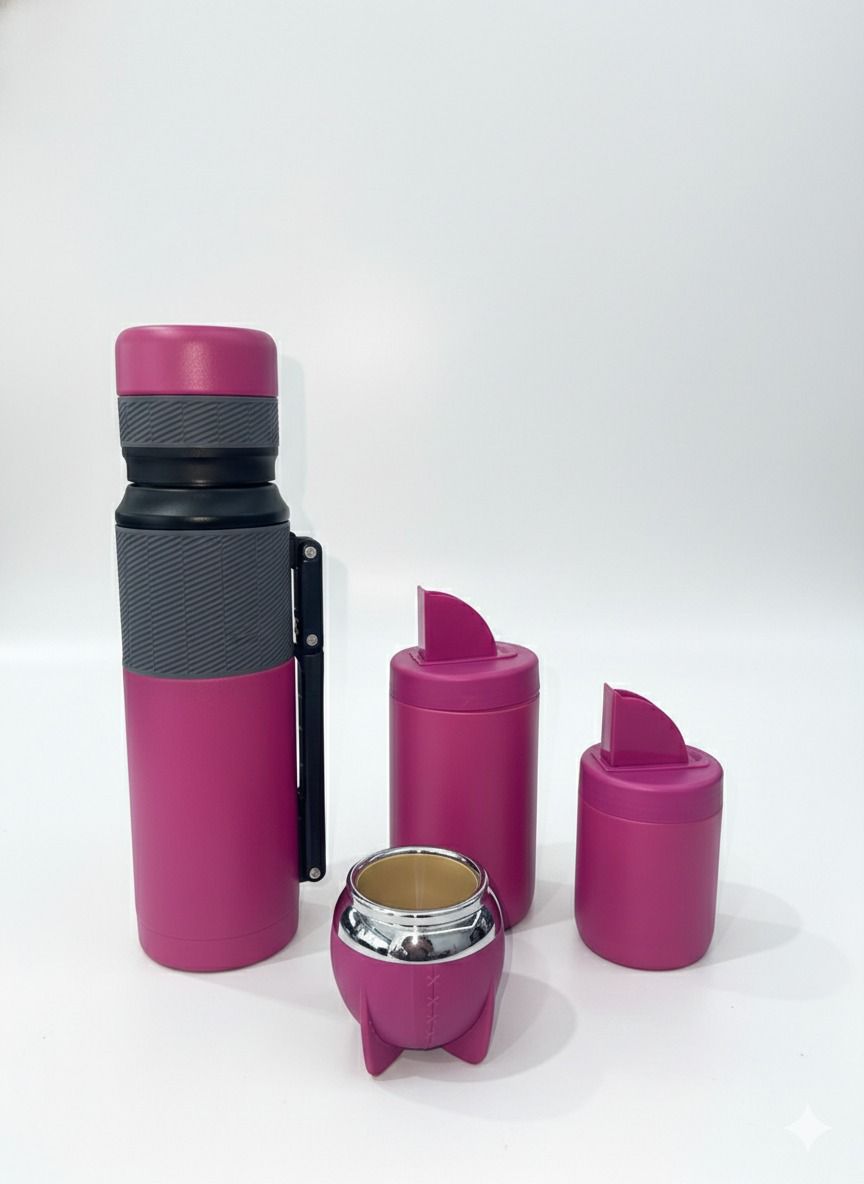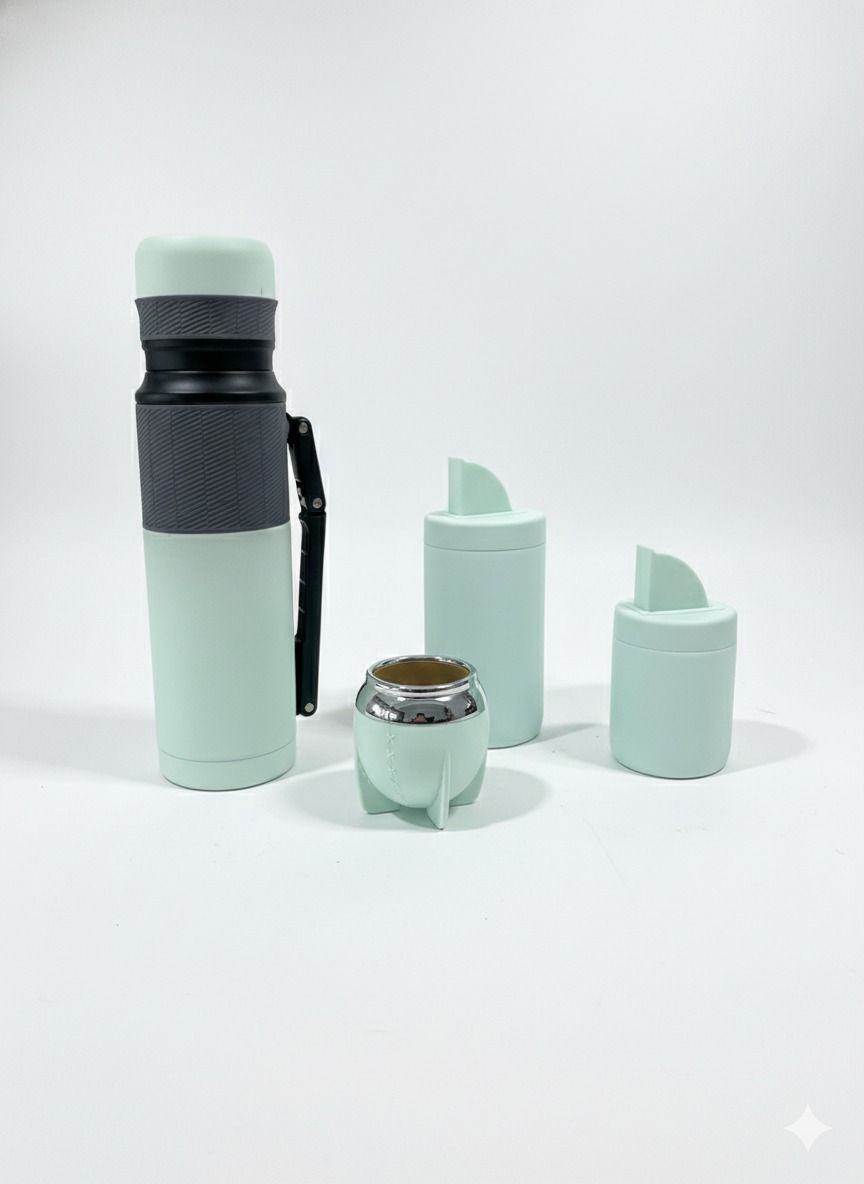 Reinventamos el ritual del mate con un diseño vanguardista y funcional. Nuestro Set Matero Rocket destaca por sus líneas limpias y su acabado mate «soft-touch», convirtiéndose en el accesorio perfecto para tu escritorio o tus viajes. El mate cuenta con una base reforzada tipo trípode que garantiza estabilidad en cualquier superficie, mientras que los accesorios coordinados mantienen la estética impecable.