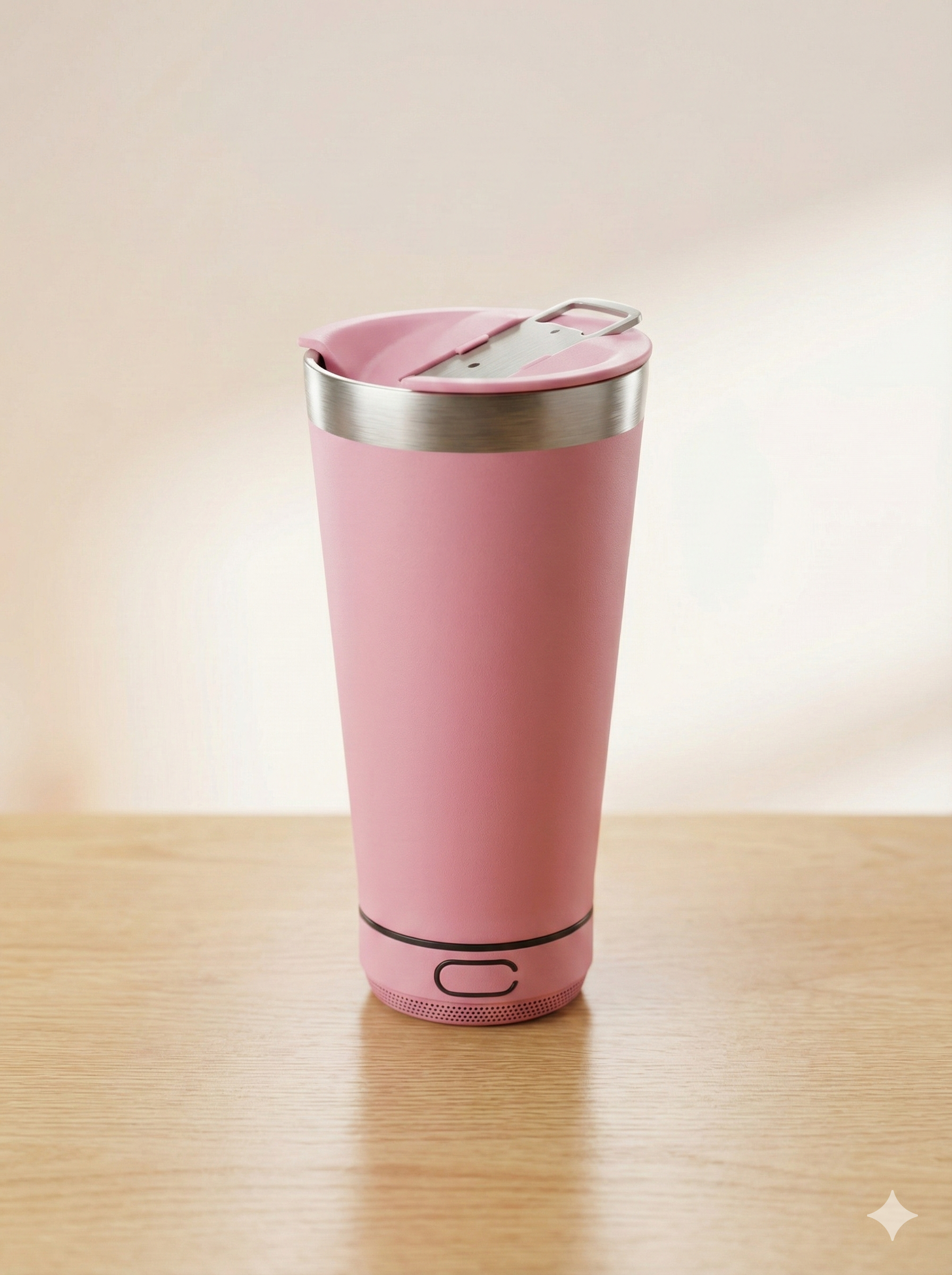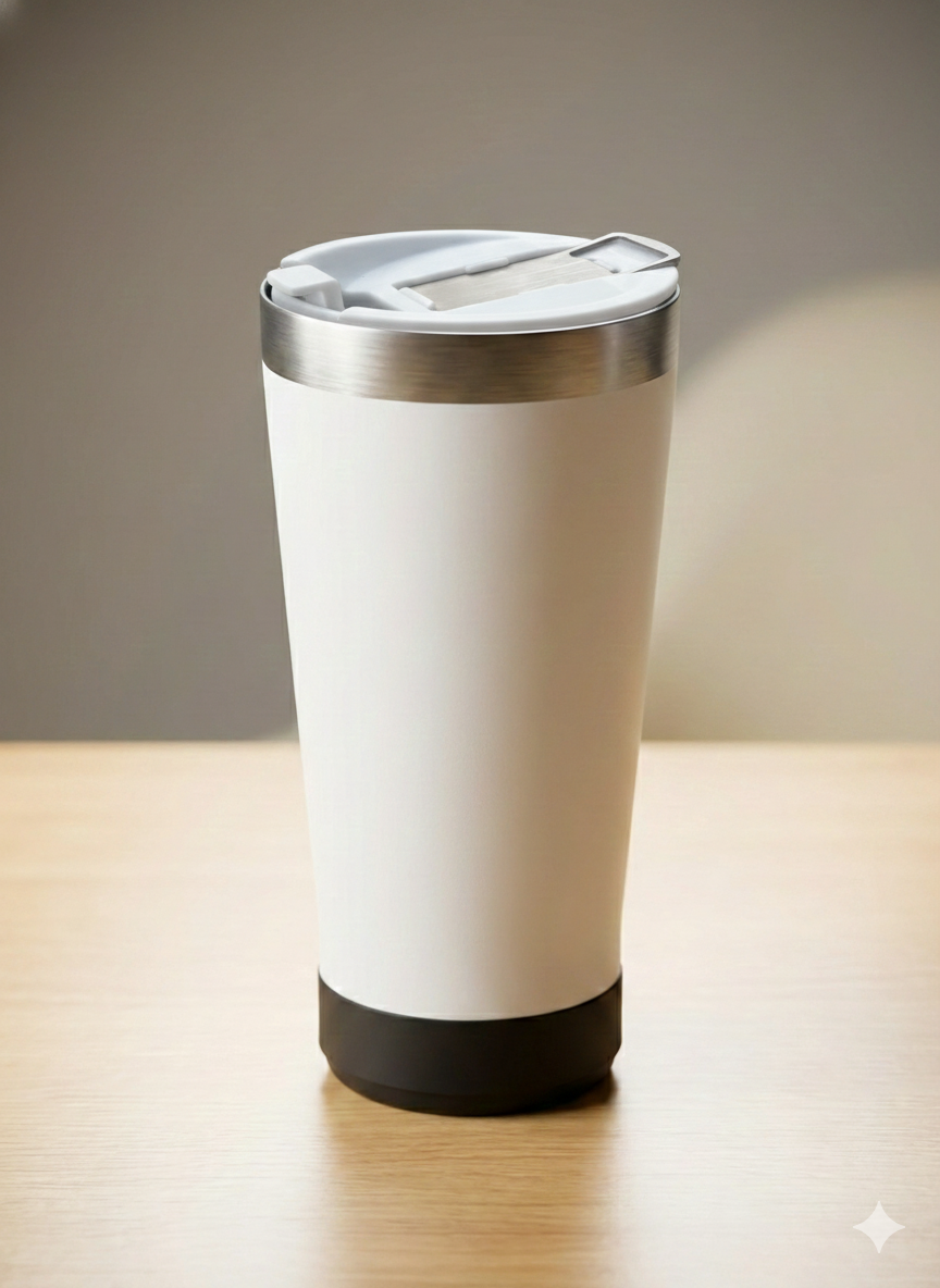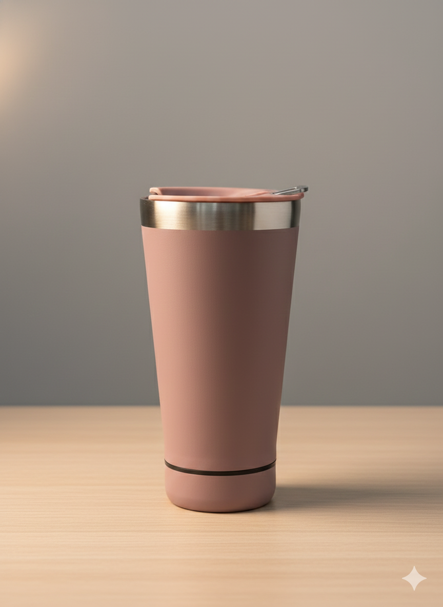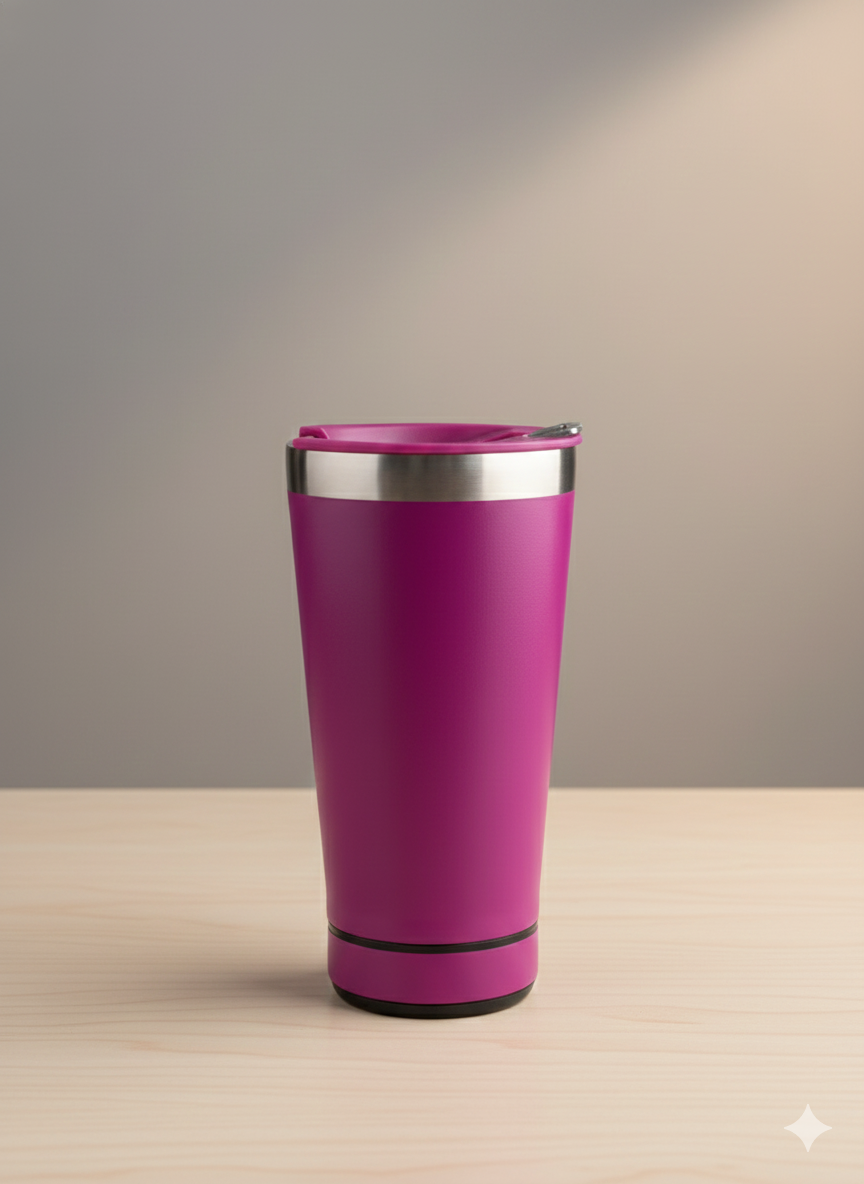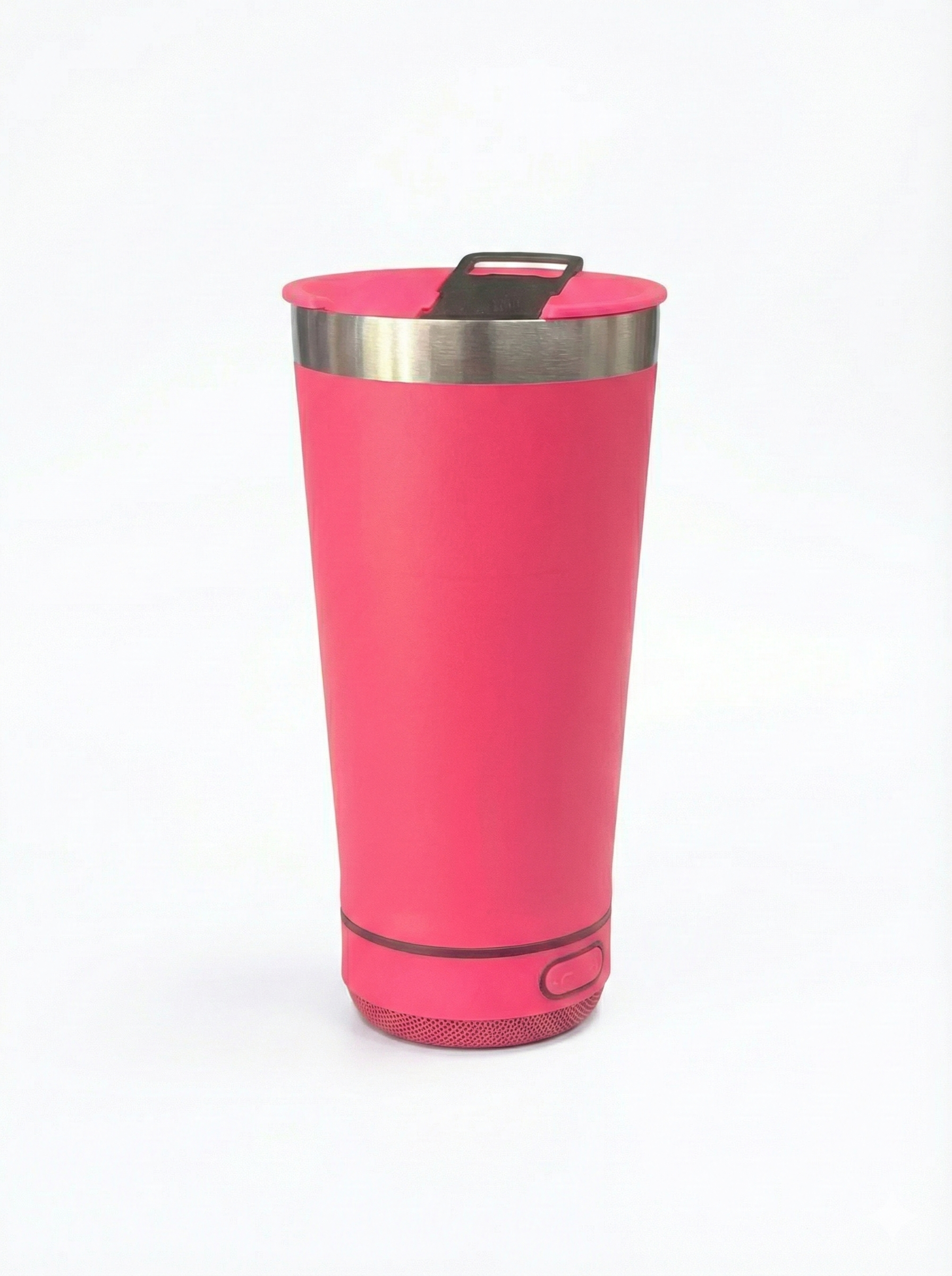 Este innovador vaso térmico en color fucsia integra un parlante Bluetooth en su base para que disfrutes de tu música favorita mientras te hidratas. Su estructura de acero inoxidable cuenta con una tapa hermética y un diseño ergonómico que facilita un agarre cómodo y seguro. El dispositivo incluye controles en la parte inferior para gestionar la reproducción y una rejilla metálica que asegura una salida de sonido clara. Es el accesorio tecnológico ideal para llevar a la playa, entrenamientos o cualquier actividad al aire libre.