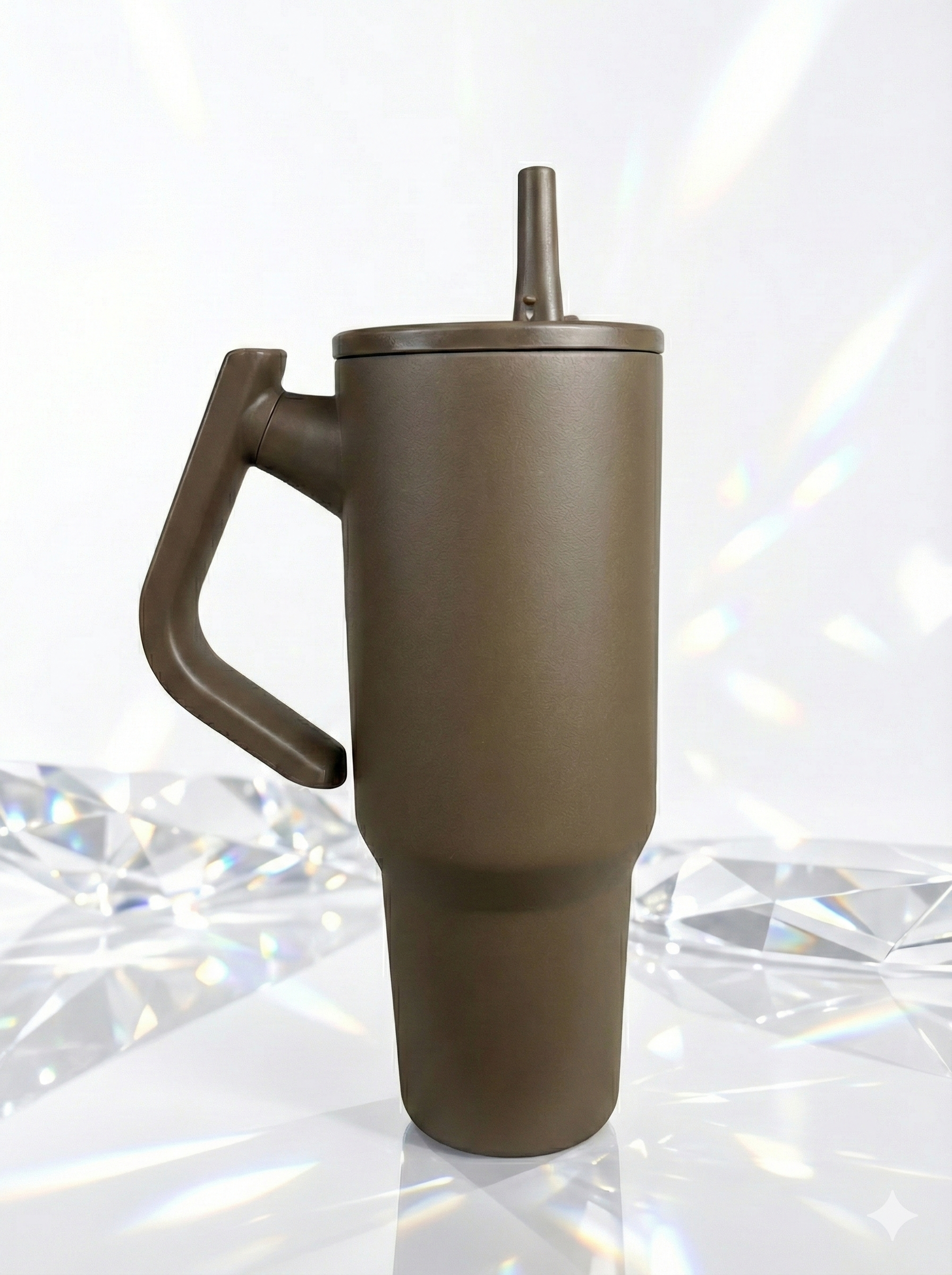 Este vaso térmico tipo Quencher presenta un diseño ergonómico con un asa robusta y un sorbete integrado para facilitar el consumo de bebidas en cualquier momento. Su estructura de doble pared garantiza el mantenimiento de la temperatura, ya sea para líquidos fríos o calientes, durante varias horas. El acabado exterior en color marrón mate le otorga una estética moderna y minimalista que se adapta a diferentes estilos. Es el accesorio ideal para hidratarse con comodidad tanto en la oficina como en actividades al aire libre.