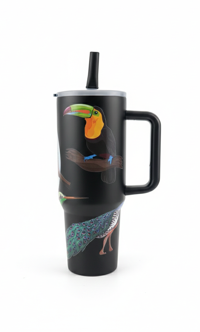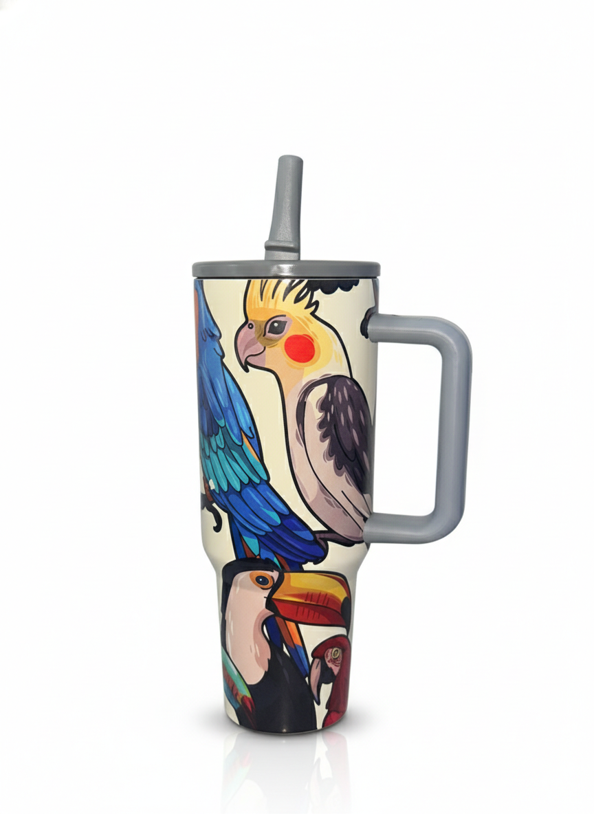 Vaso Térmico XL «Tropical Birds» – Estilo y Capacidad Superior